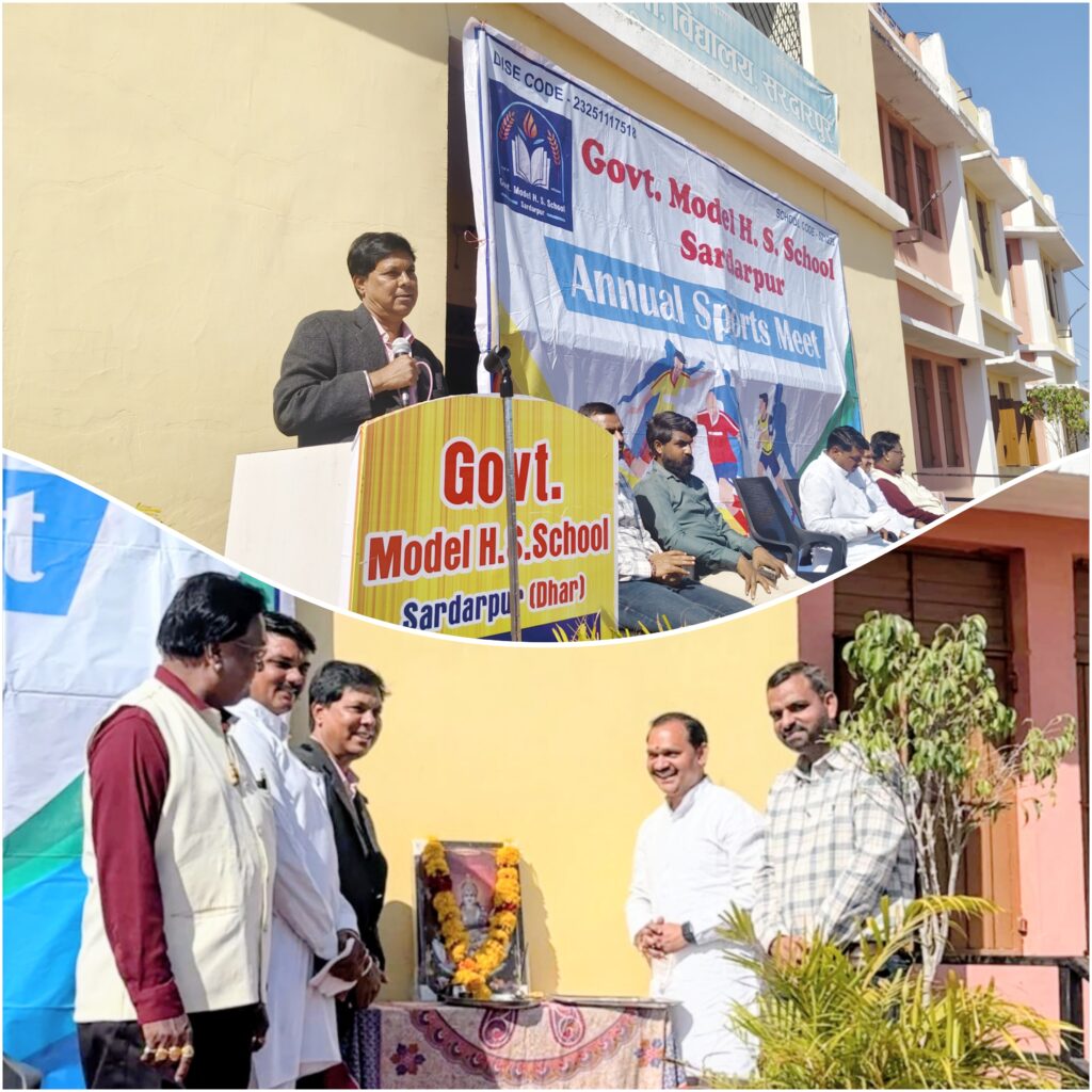 शासकीय मॉडल स्कूल सरदारपुर में गुरूवार को तीन दिवसीय वार्षिक खेलकूद प्रतियोगिता का भव्य एवं उत्साहपूर्ण शुभारंभ किया गया। कार्यक्रम का उद्घाटन समारोह मुख्य अतिथि क्षैत्रीय विधायक प्रताप ग्रेवाल की गरिमामयी उपस्थिति में संपन्न हुआ। इस अवसर पर विशेष अतिथि के रूप में भाजपा जिला महामंत्री राकेश पटेल, मण्डल अध्यक्ष उंकारलाल जाट, वरिष्ठ पार्षद संजय जायसवाल एवं पार्षद नीरज कटारे उपस्थित रहे। अतिथियों द्वारा मॉ सरस्वती के चित्र पर पूजन अर्चन एवं माल्यार्पण कर कार्यक्रम को विधिवत शुभारंभ किया गया एवं खिलाड़ियों से परिचय प्राप्त कर उन्हें खेल भावना के साथ उत्कृष्ट प्रदर्शन के लिए प्रेरित किया गया। कार्यक्रम को संबोधित करते हुए मुख्य अतिथि विधायक प्रताप ग्रेवाल ने कहा कि सफलता एक ऐसा स्वाद है जिसे हर कोई चखना चाहता है सफलता एक ऐसा ख्वाब है जिसे हर कोई देखना चाहता है सफलता एक ऐसी मंजिल है जिसे हर कोई पाना चाहता है हमारे जीवन के हर मोड़ पर परेशानियां आती है मुसीबतें आती है रुकावट आती है अड़चनें आती है लेकिन उससे कभी घबराना नहीं चाहिए समस्याओं के सामने हमें कभी अपनी हार नहीं मानना चाहिए। सफलता एक ऐसी तिजोरी है जो निरंतर अभ्यास, कड़ी मेहनत, लगन, साहस की चाबी से खुलती है आप सभी कडी मेहनत और लगन से अपनी सफलता प्राप्त करे। विद्यालय मे पानी की समस्या के लिए विधायक ग्रेवाल द्वारा मार्च माह मे नवीन ट्युबवेल खनन करवाने की बात कही। कार्यक्रम का संचालन शिवानी नामेदव ने किया, आभार सुरेन्द्र सांखला ने व्यक्त किया। इस दौरान जितेन्द्र रावत, सुरेन्द्र टेगोर, सुनीता बेले सहित समस्त विद्यालय परिवार उपस्थित रहा।