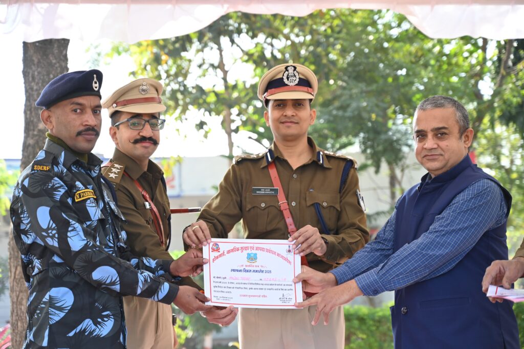 धार, होमगार्ड, नागरिक सुरक्षा एवं आपदा प्रबंधन विभाग मध्यप्रदेश का स्थापना दिवस समारोह शनिवार को होमगार्ड कार्यालय मांडव लिंक रोड धार में पुलिस अधीक्षक श्री मयंक अवस्थी के मुख्य आतिथ्य एवं अपर कलेक्टर श्री संजीव केशव पांडेय की विशिष्ट अतिथि में मनाया गया। इस अवसर पर होमगार्ड के दो प्लाटून एवं सिविल डिफेंस वालंटियर के दो प्लाटूनों के द्वारा परेड का आयोजन किया गया। सर्वप्रथम मुख्य अतिथि को परेड के द्वारा सलामी दी गई। बाद मुख्य अतिथि के द्वारा परेड निरीक्षण किया गया व परेड के द्वारा मार्च पास्ट किया।