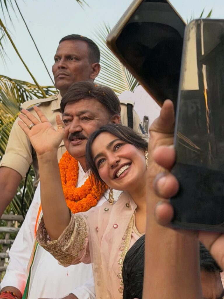 बिहार विधानसभा चुनाव का रंग अब गहराता जा रहा है। भागलपुर में आज एक खास नज़ारा देखने को मिला जब बॉलीवुड अभिनेत्री नेहा शर्मा अपने पिता और कांग्रेस प्रत्याशी अजित शर्मा के समर्थन में सड़क पर उतरीं। नेहा शर्मा ने जनता से अपने पिता के पक्ष में मतदान करने की अपील की और क्षेत्रवासियों से संवाद किया।